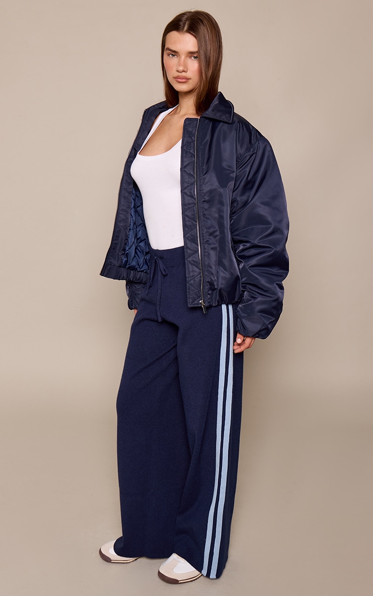Navy Crochet Knit Stripe Detail Track Pants
